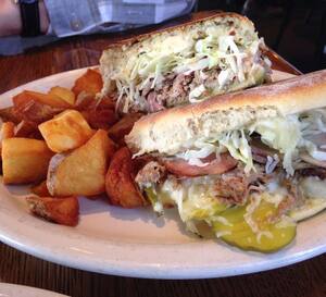 Bringing the farmers market to you. Bad Ass BLT 1350 Ground 9 Oz bacon patty sandwich roasted in a wood fired oven with mayonnaise local tomatoes and lettuce served with field good potatoes. This restaurant is a farm-to-table comfort food haven and a great place to get both a decadent burger and a lush green salad made with locally farmed produce.